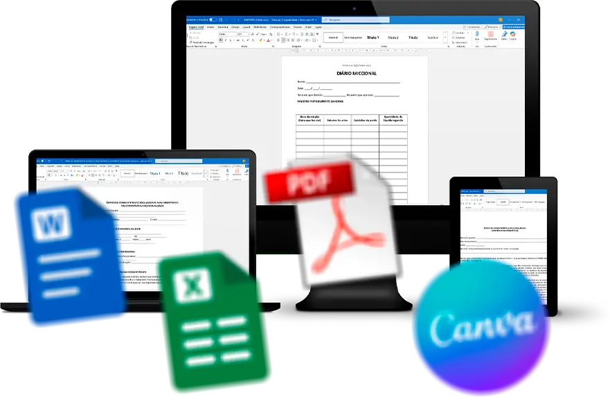 Você perde tempo refazendo contratos, fichas e laudos do zero? Chega disso. Com o Fisio Pélvi Docs, você terá uma biblioteca pronta desses arquivos, editáveis em Word, PDF ou Canva.